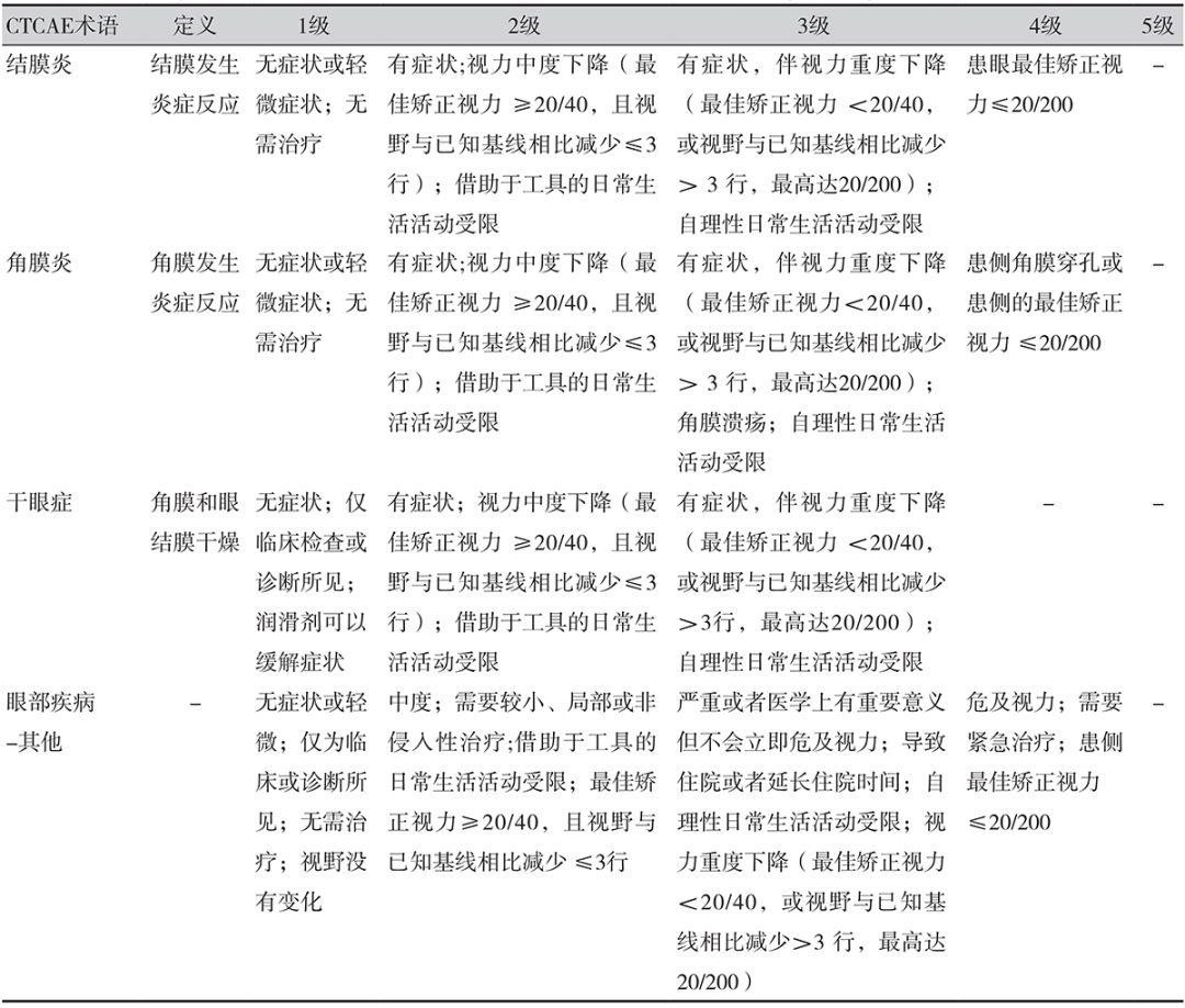 表1.CTCAE 5.0眼部不良事件分级(部分)
