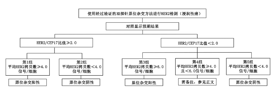 图4.HER2双探针原位杂交检测判断标准