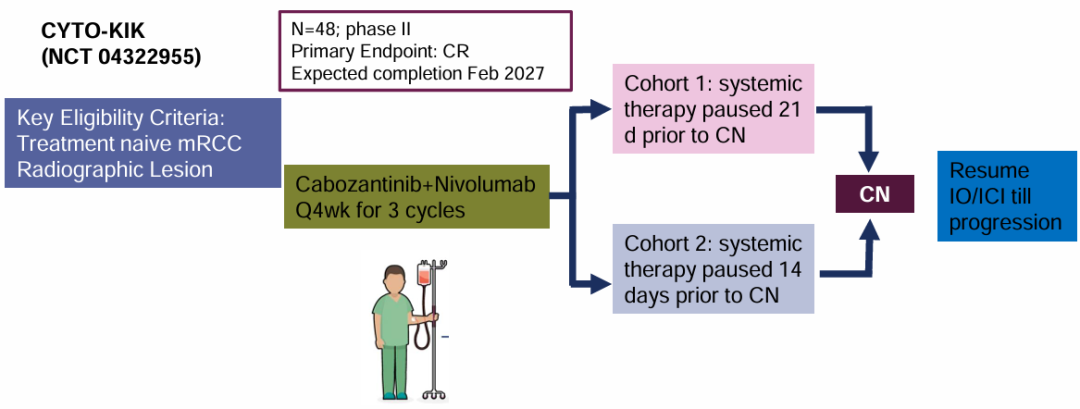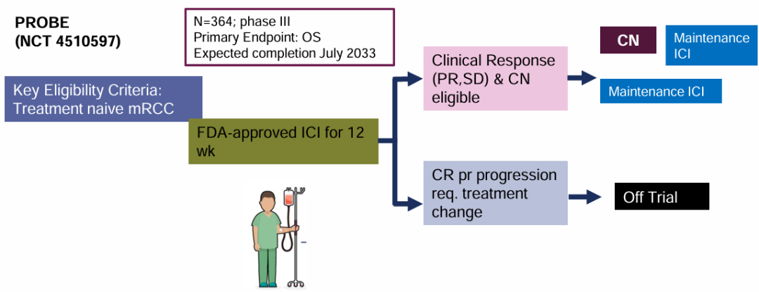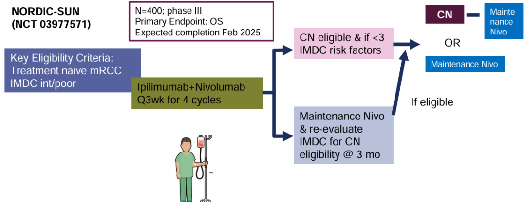2024年ESMO大会上,也公布了正在进行中的3项前瞻性研究将为减瘤性肾切除术与免疫治疗的组合提供新的证据,为临床中减瘤性肾切除术与免疫治疗时机、顺序的选择,患者的筛选标准以及应答良好患者的后续管理提供指引[9]