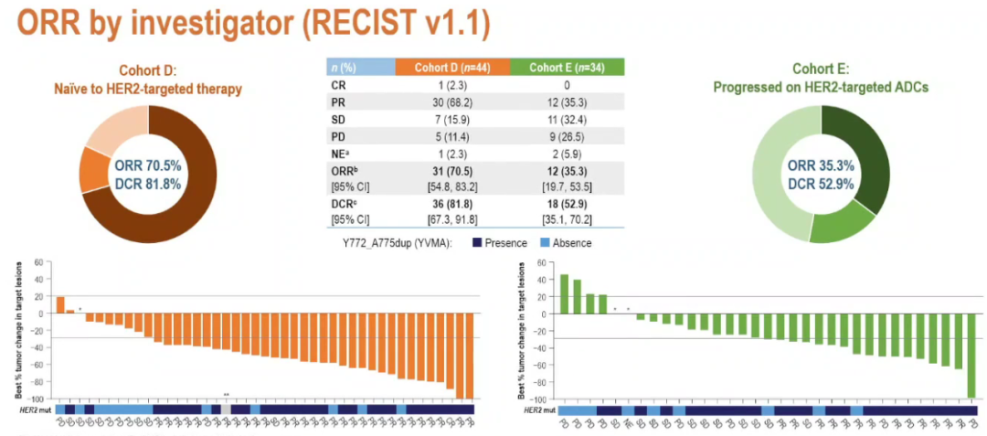 在44例接受≥1线系统治疗进展但未接受过HER2靶向治疗的患者中,中位随访17.2个月时ORR达70.5%,中位DOR为8.7个月。