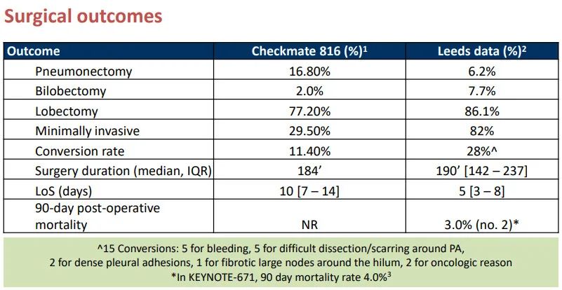 以上6个临床III期试验证明,新辅助免疫+化疗的治疗模式术后并发症发生率与单纯化疗组相近,围术期免疫治疗在可切除非小细胞肺癌中具有可控的安全性。