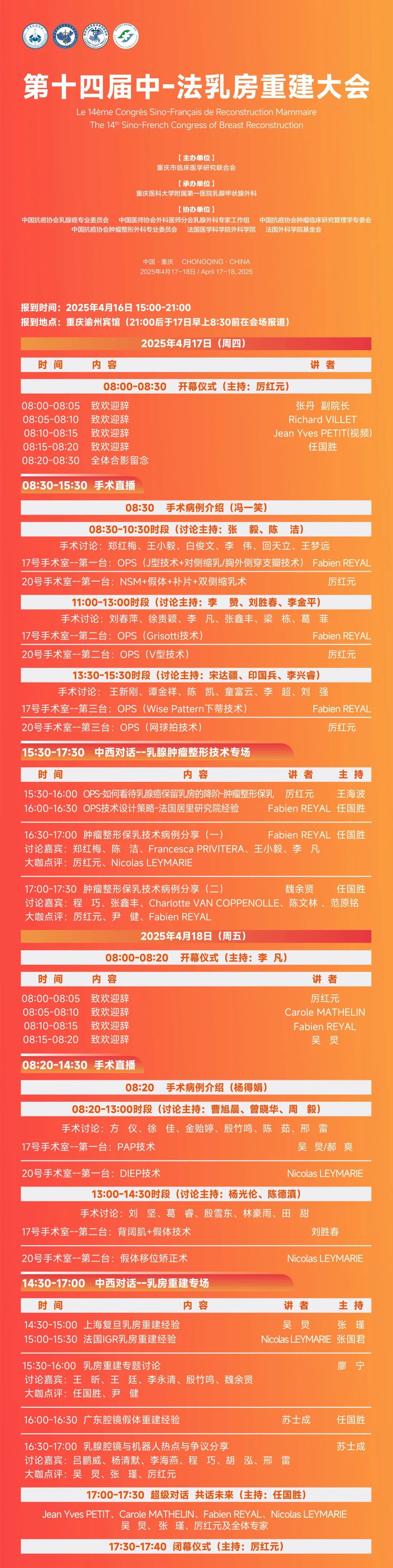 肿瘤瞭望:作为大会主席,请您为我们介绍一下“中-法乳房重建大会”的会议日程安排,以及本次大会将呈现哪些亮点内容?