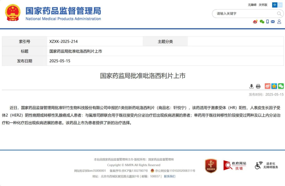 基于这些循证医学证据,中国国家药品监督管理局(NMPA)已于5月15日同时批准吡洛西利在HR+/HER2-晚期乳腺癌的两项适应症,分别为: