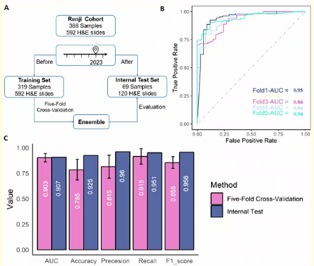 因此,我中心在十余年诊疗期间积累了大量MIBC患者免疫组化分析结果以及HE染色样本,通过AI大数据训练得到智能识别模型,有望简化管腔型或基底型膀胱癌的分子分型流程。这对患者预后意义重大,因为一旦识别出基底型患者并进行确认,则可及时采用包括靶向治疗、免疫药物等在内的综合治疗手段,助力患者预后改善。