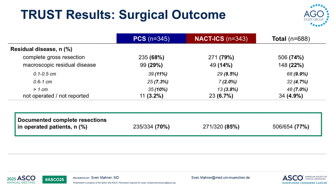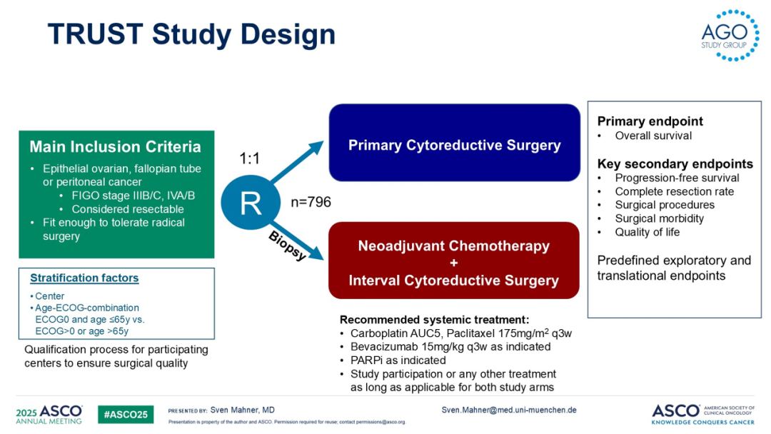 1.Mahner,S,et al.TRUST:Trial of radical upfront surgical therapy in advanced ovarian cancer(ENGOT ov33/AGO‐OVAR OP7).2025 ASCO,LBA5500.