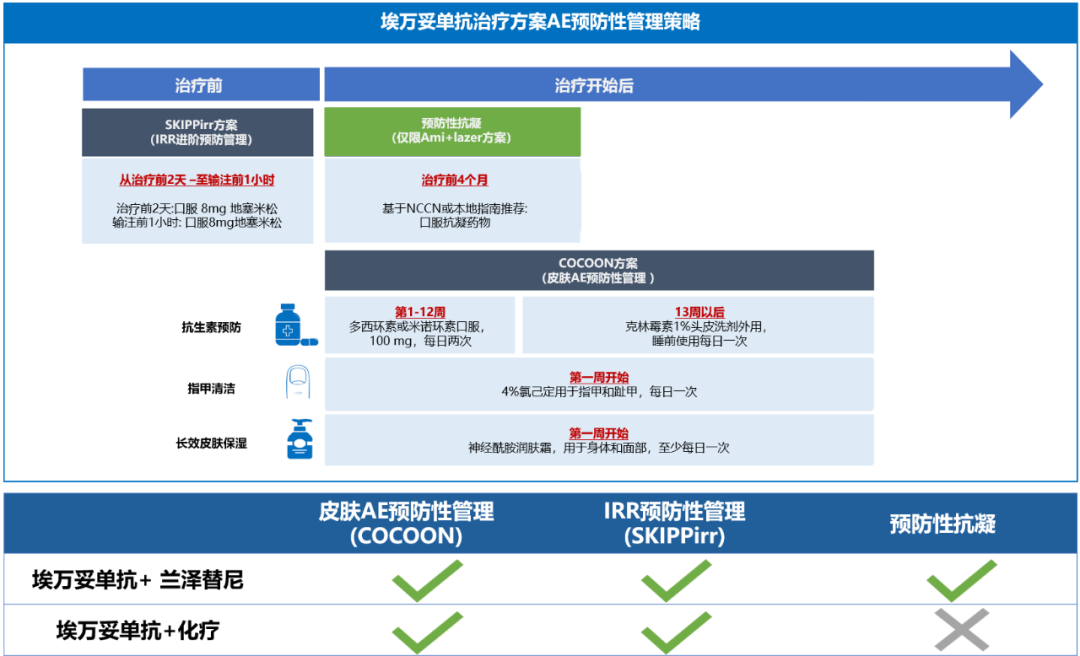 通过这种全方位预防性处理策略(Comprehensive AE prevention strategy,CAPS)提升了埃万妥单抗的安全性和耐受性,为患者保驾护航,减少患者因为AE导致的中断治疗、用药减量或者终止治疗,可能会进一步延长患者的生存!