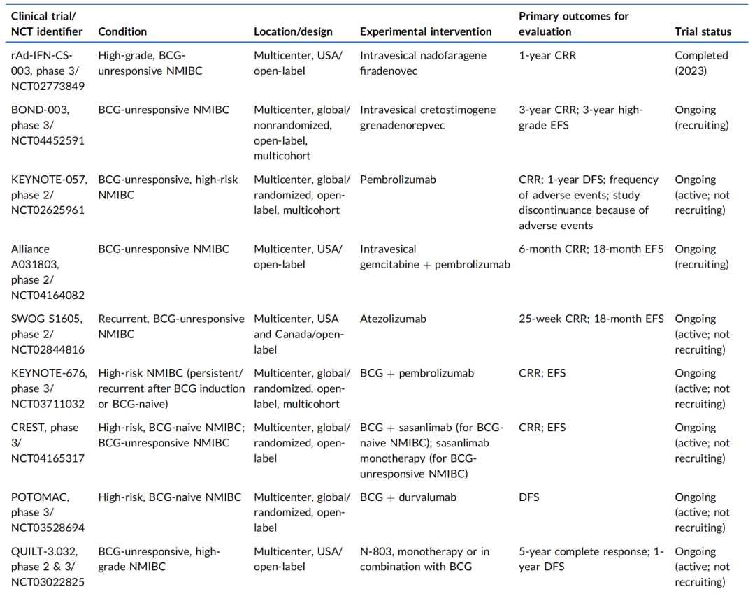 表2.已完成或在研的NMIBC围术期治疗研究