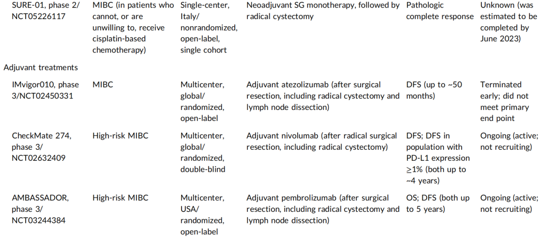 表1.已完成或在研的MIBC围术期治疗研究