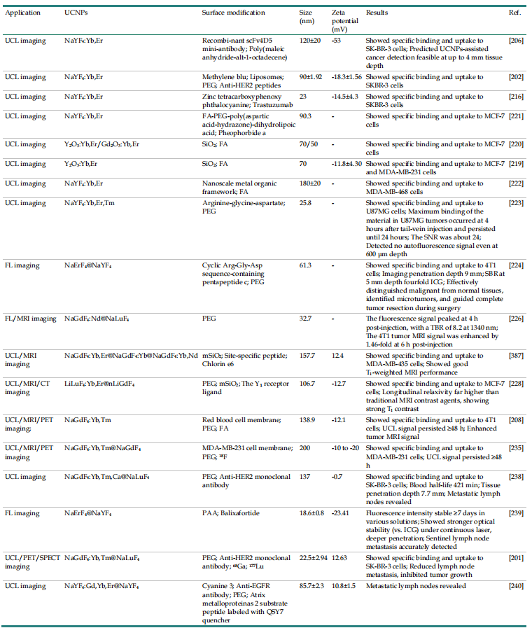 表1.UCNPs在乳腺癌分子成像中的应用。