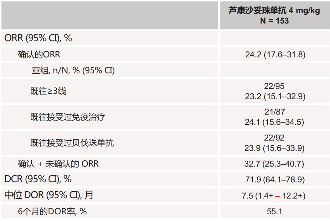 • 中位DOR为7.5个月;
