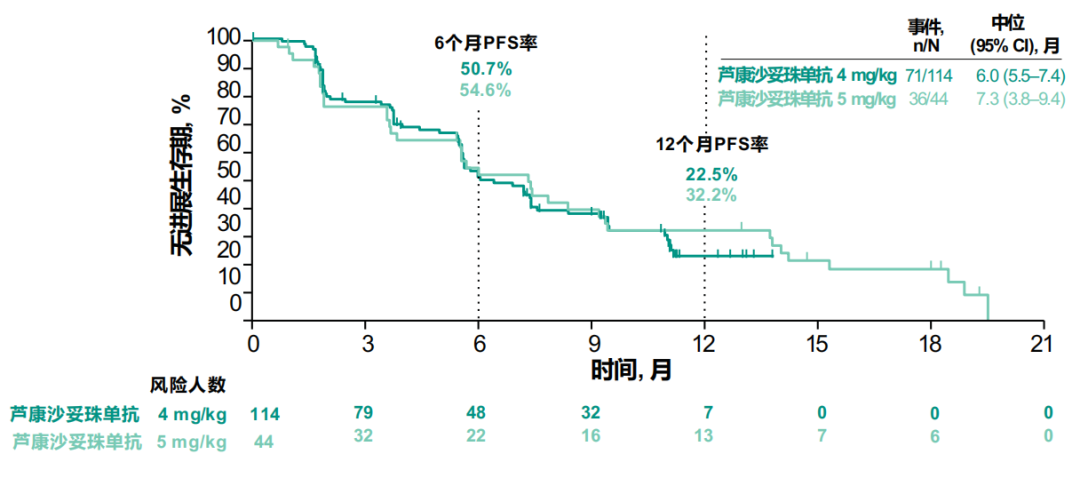 • 两个剂量组的中位PFS分别为6.0个月和7.3个月。