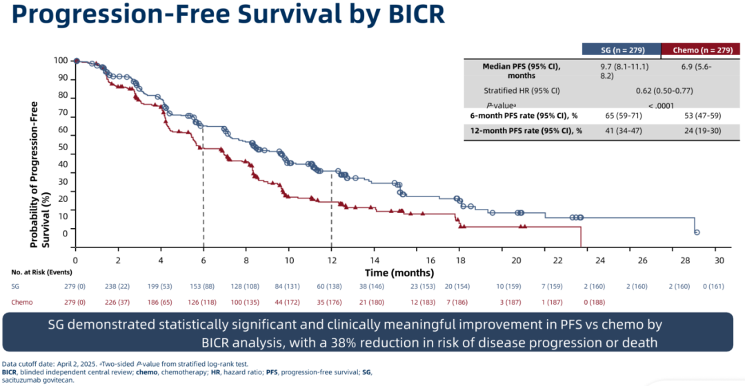 图2.ASCENT-03研究的PFS(由BICR评估)主要分析结果