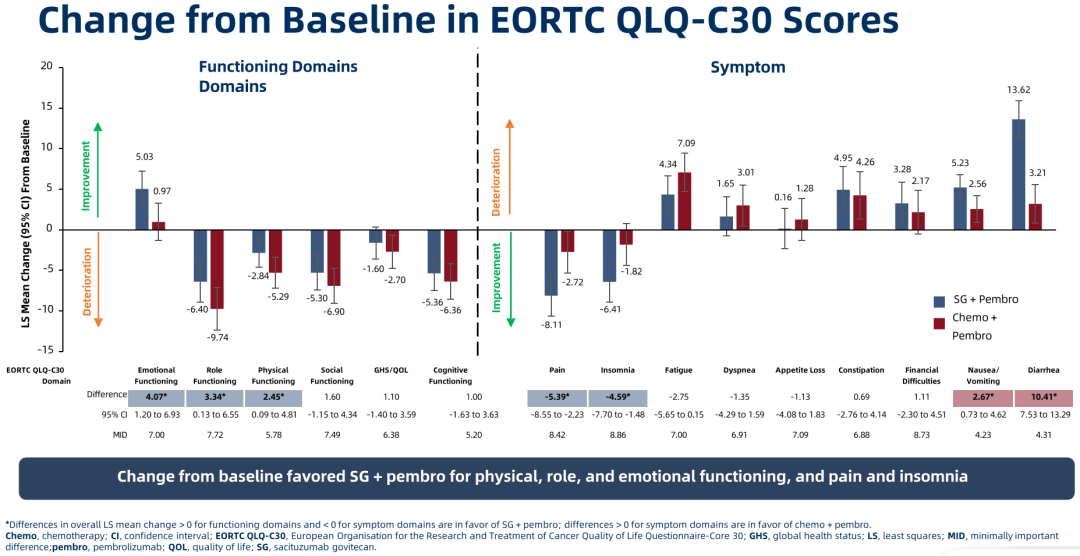 图3.ASCENT-04研究PROs分析结果,提示SG治疗可维持或改善患者生活质量指标