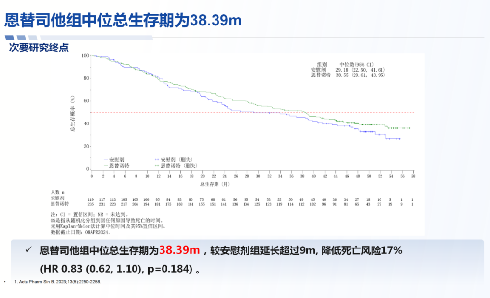 △恩替司他联合依西美坦与安慰剂联合依西美坦的OS结果