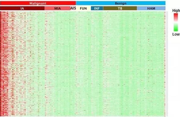 图3. 热图显示肺癌和良性组织中特异的过甲基化signature