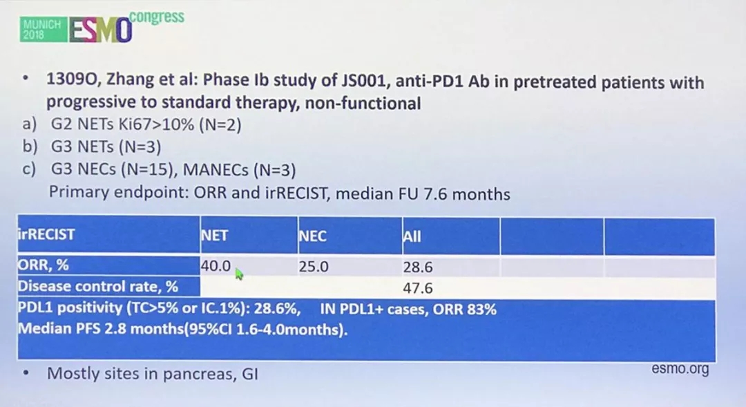 ESMO 2018丨沈琳教授团队发现PD-1单抗JS001在晚期神经内分泌肿瘤(NENs)治疗中崭露头角