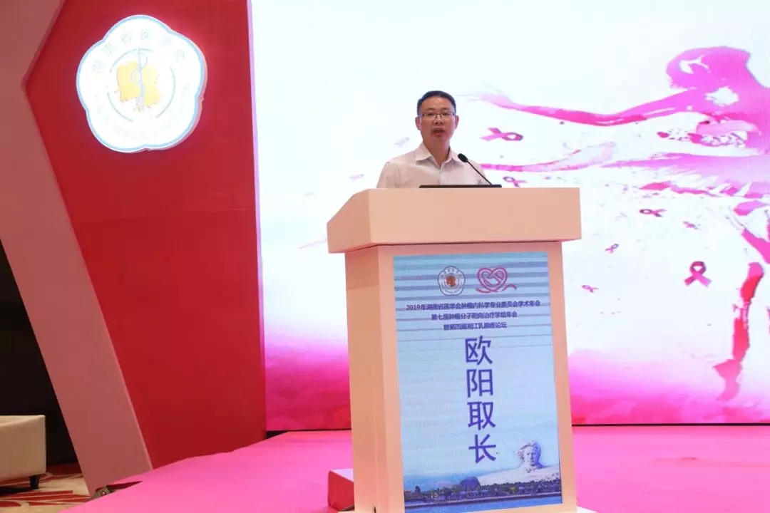2019年7月27日,由湖南省医学会肿瘤内科学专业委员会、湖南省医学会肿瘤内科学专业委员会乳腺癌学组及肿瘤分子靶向治疗学组共同主办的“湖南省第四届湘江乳腺癌论坛”在长沙市成功召开。本次论坛召集了全国各地乳腺癌领域的专家学者,齐聚一堂分享乳腺癌临床实践经验及国内外研究成果。大会由湖南省肿瘤医院乳腺内科主任、湖南省医学会肿瘤内科学专业委员会主任委员、中国抗癌协会乳腺癌专业委员会委员欧阳取长担任主持人。