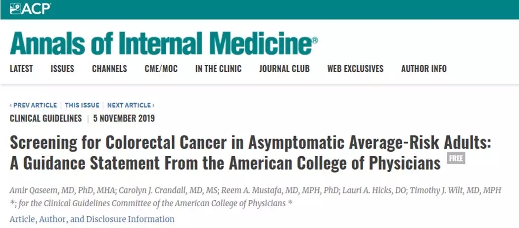 ACP今日发表无症状平均风险成人结直肠癌筛查指导声明(附原文)
