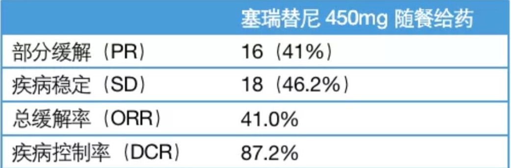 研究中,塞瑞替尼450 mg/d随餐治疗未出现致命事件或因不良事件(AE)停药,AE以1/2级为主,仅有2例患者进行了剂量下调。而ASCEND-8研究450 mg随餐治疗组的AE停药比例是7.4%,ASCEND-4研究中亚洲人群750 mg空腹治疗因AE 中止治疗的比例为9.2%。
