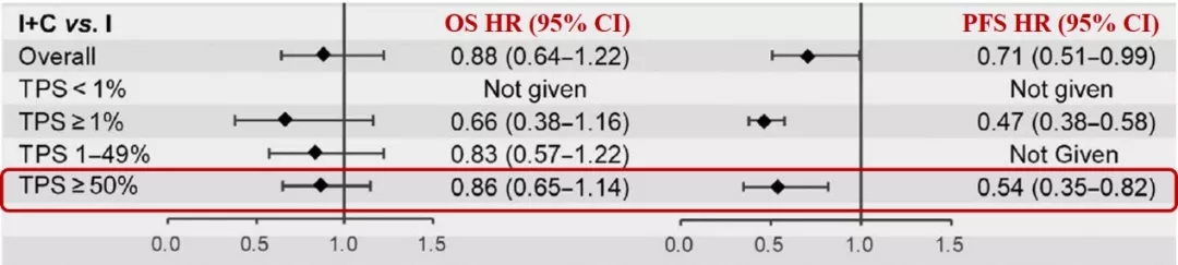 图3. 卡瑞丽珠单抗±化疗在PD-L1≥50%患者中的分析