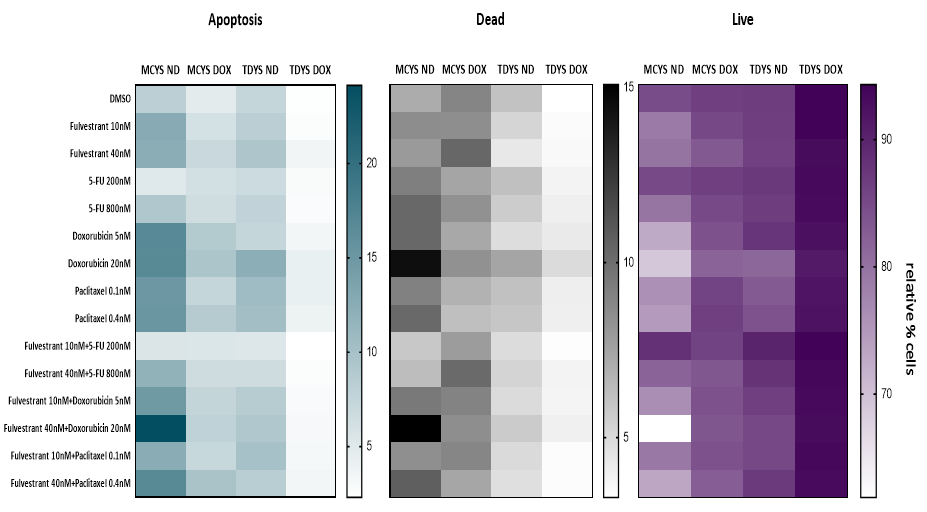 细胞凋亡实验也显示在P53野生型的MCF7与MCF7 Y537S细胞系中,氟维司群与化疗联合具有更高的凋亡比例(图5)。