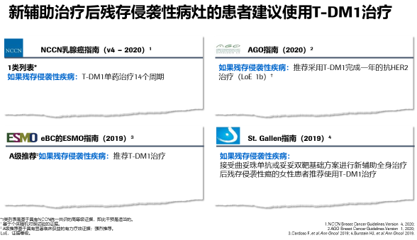 对于RCB评分较好或残余病灶较小的患者,我们看到在KATHERINE研究中仍然有获益,我们仍然推荐这部分患者使用T-DM1治疗。