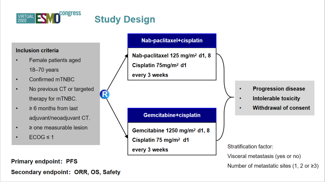 《肿瘤瞭望》:您的团队在ESMO大会上做了吉西他滨或白蛋白紫杉醇联合顺铂一线治疗mTNBC(GAP)的报告,请您就该研究设计及研究结果做出简要介绍。