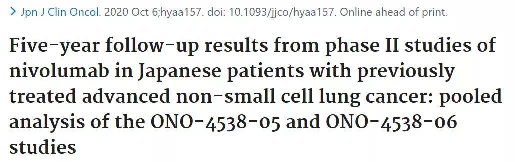 晚期NSCLC患者接受Nivolumab治疗的5年随访数据:来自II期ONO-4538-05及ONO-4538-06研究荟萃数据