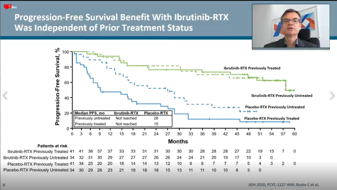 伊布替尼+利妥昔单抗(IR)在华氏巨球蛋白血症(WM)患者中可带来显著且持续的疗效和生存优势。在安全性方面,IR方案组的不良事件(AEs)发生率可控,无新的AEs出现。