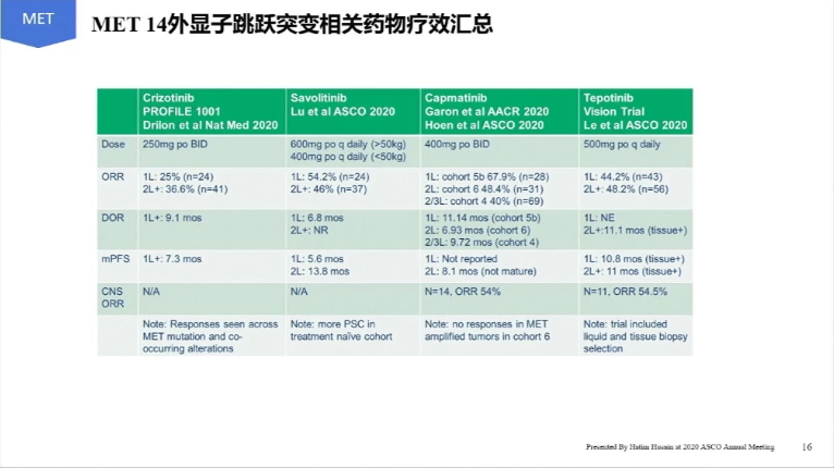 而MET可为第一驱动突变以及共驱动突变,近年来针对这一突变研制出了不少的新抑制剂,在临床试验中效果也较为理想,其中包括VISION研究。