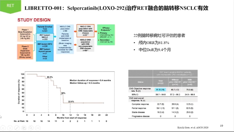 这一基因同样在NCCN 2020第四版的中,增加了这一靶点检测的必要性,目前这一靶点也有不少药物正开展研究,包括①LIBREETO-001:Selpercatinib(LOXO-292)