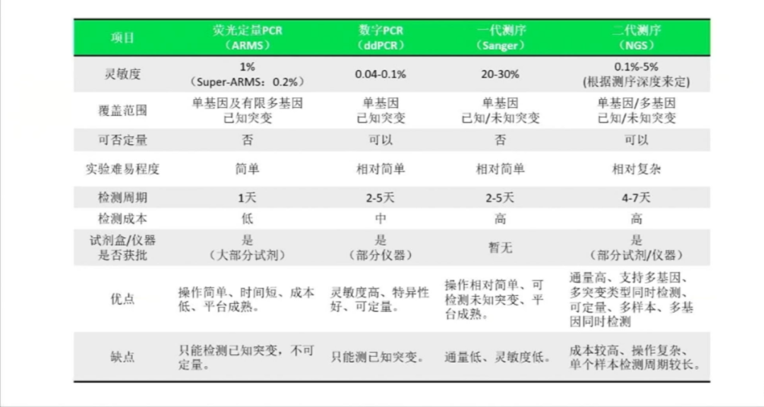但随着样本获取的难易程度不同以及新致病突变的发现,有效地结合PCR和NGS技术,可实现患者靶点的全覆盖,目前在院内一线治疗首选为PCR技术但随着NGS技术的发展在未来,两种技术的结合会给我们带来更完善的精准诊疗。