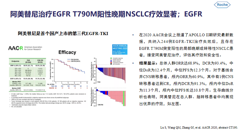 其研究亮点为在于既往一线治疗过程中PFS达到19.4个月,只有奥西替尼的一线FLAURA研究中达到PFS 18.9个月 因此FDA也批准其作为一线的治疗方案。