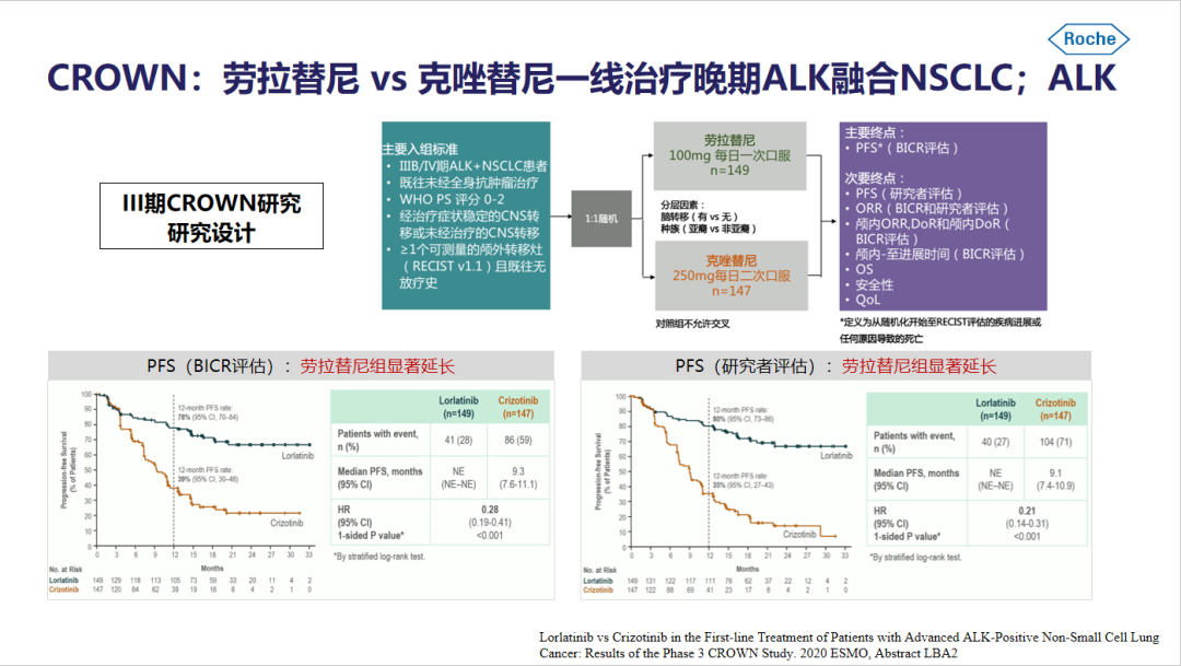⑤CROWN:劳拉替尼 vs 克唑替尼一线治疗晚期ALK融合NSCLC
