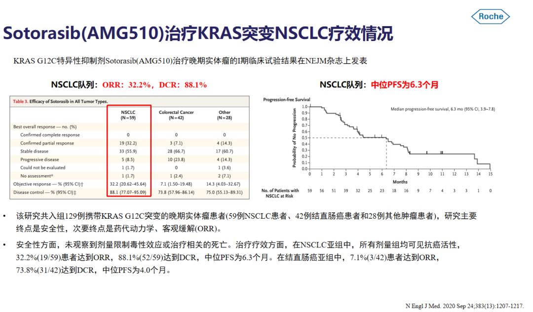 对于K-RAS突变来说既往并没有太好的药物进行治疗,多给予标准化疗方案。而在今年ASCO大会上一篇来自于《新英格兰医学》杂志的关于新药AMG510的效果引起人们的广泛注意。