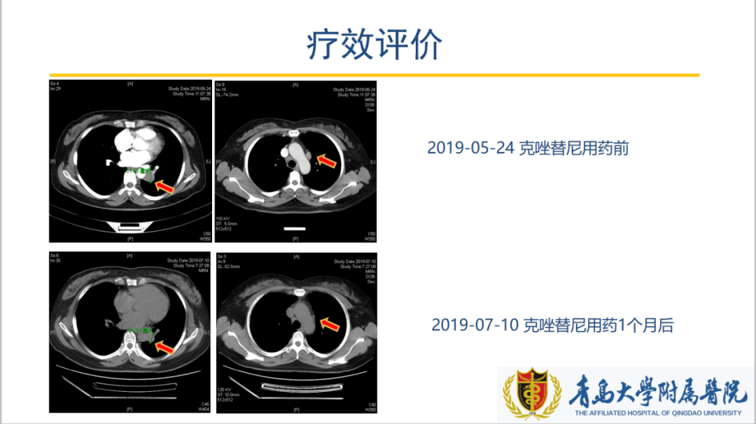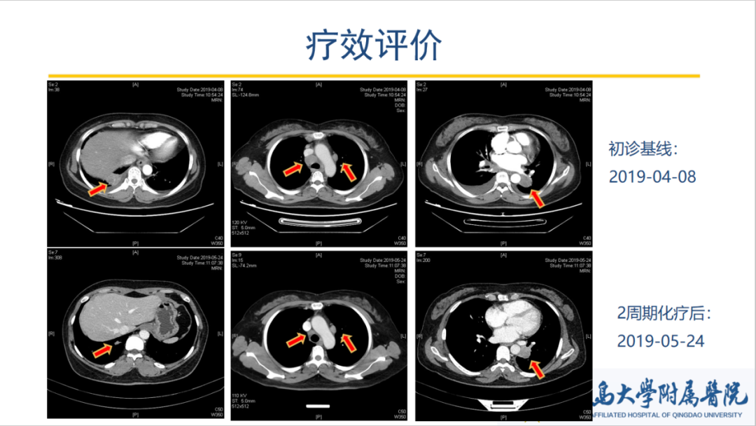 患者在经过两个周期的治疗后显示PR,然而由于后续患者拒绝治疗,无法进一步获得后续数据。