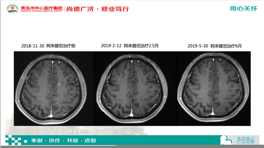 在放疗过后,患者目前口服阿来替尼病情稳定。