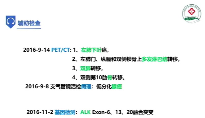 也因此我们修改诊断为,右肺下叶小细胞癌 局限期 cT2aN3M0 IIIB期以及肺下叶腺癌 cT4N2M0 IIIB期 ALK基因融合。