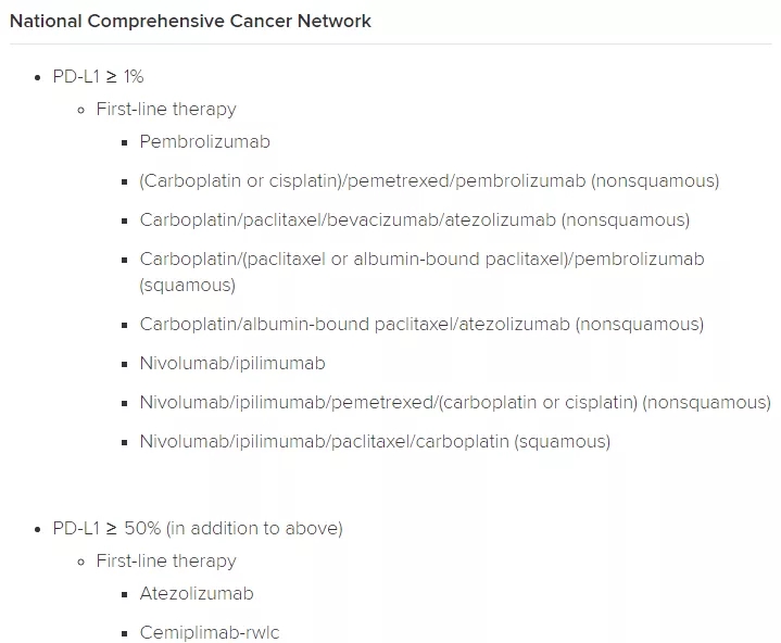 NCCN指南对PD-L1≥1%患者的推荐