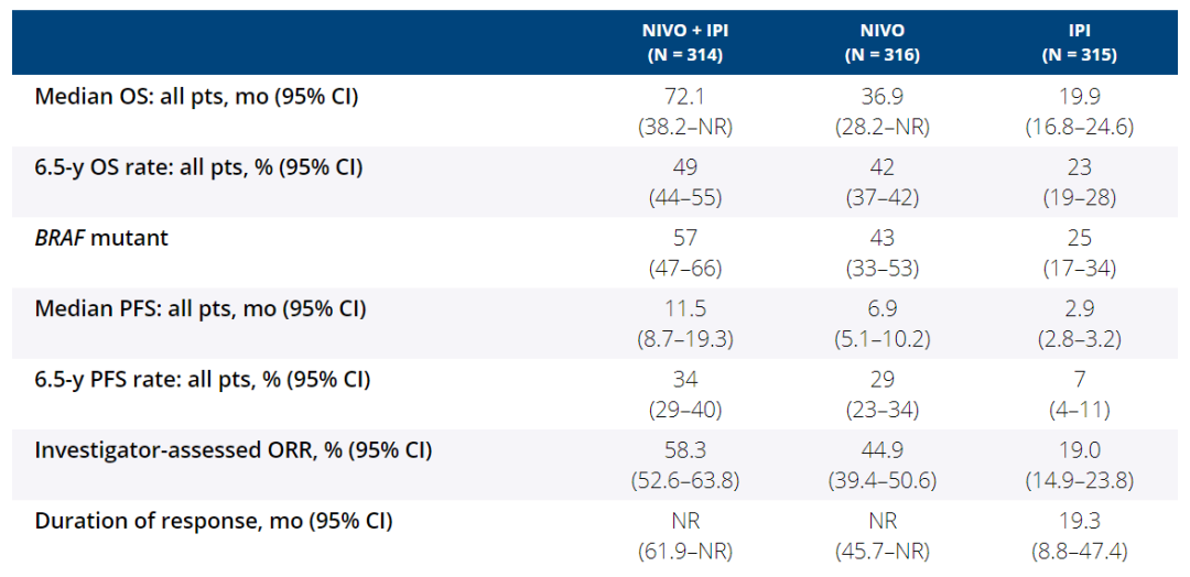 表1. CheckMate 067随访6.5年数据