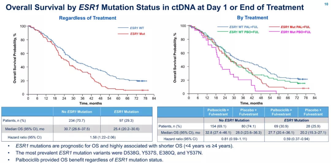 不同ESR1状态的患者均能获益于哌柏西利治疗