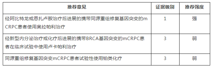 (3)新增同源重组修复基因突变的CRPC治疗推荐意见