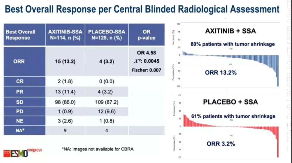 通常情况下,盲法独立中心评估的结果相较于研究者评估的结果可能更具客观性,AXINET研究由盲法独立中心评审的数据达到了阳性结果,这也是第一个获得阳性结果的抗血管生成联合SSAs的Ⅲ期随机对照研究,或将进一步改变临床实践。