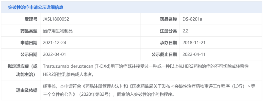 △NMPA药品评审中心网站公示T-DXd第2个突破性疗法申请