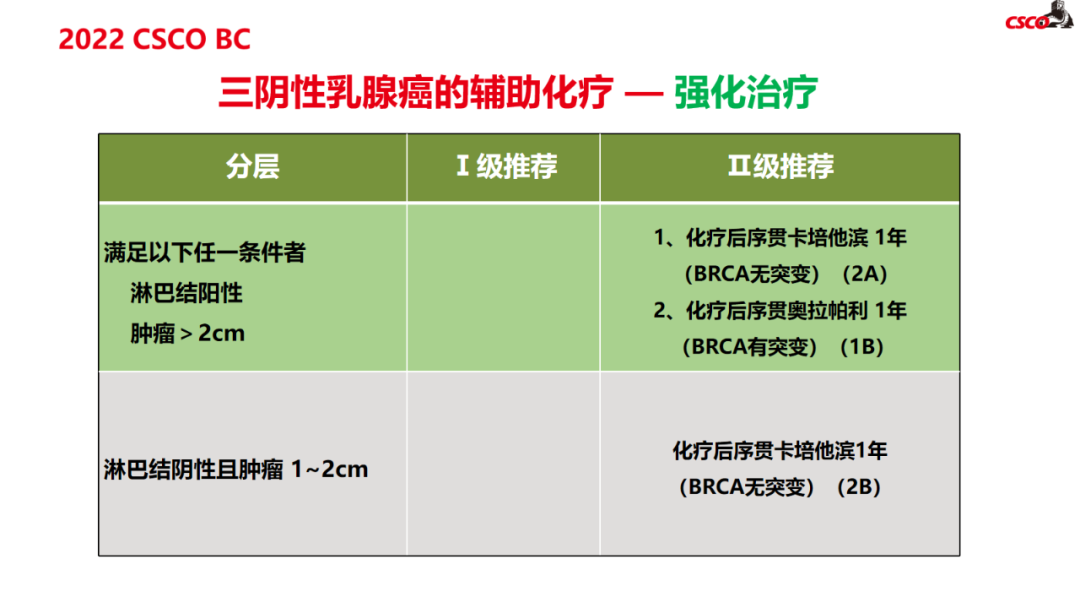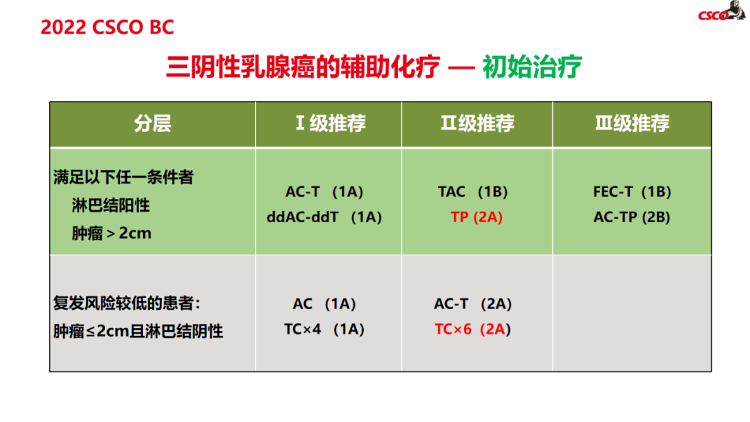 CSCO BC指南将TNBC辅助化疗分为两个阶段,即初始治疗和强化治疗。