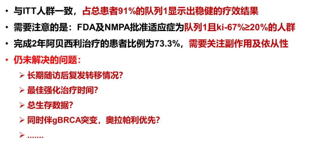 HR+:阿贝西利联合ET显著降低3年iDFS和DFRS事件风险,长期随访结果、最佳强化治疗时间、毒副作用、总生存等等问题仍需关注;机会窗试验提示HER3-ADC在HR+早期患者中的活性;