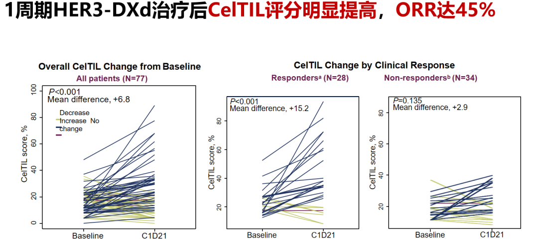 研究结果:非Luminal亚型和高复发风险评分与CelTIL的高反应相关。治疗前ERBB3 mRNA水平与CelTIL的变化或临床应答无关,治疗后配对Ki67显著降低(p<0.001),而ERBB3 mRNA未出现显著降低(p=0.13)。在C1D21时,患者免疫基因被诱导,增殖基因被抑制(假发现率=5%)。CelTIL评分独立于基线ERBB3 mRNA和HER3免疫组水平。