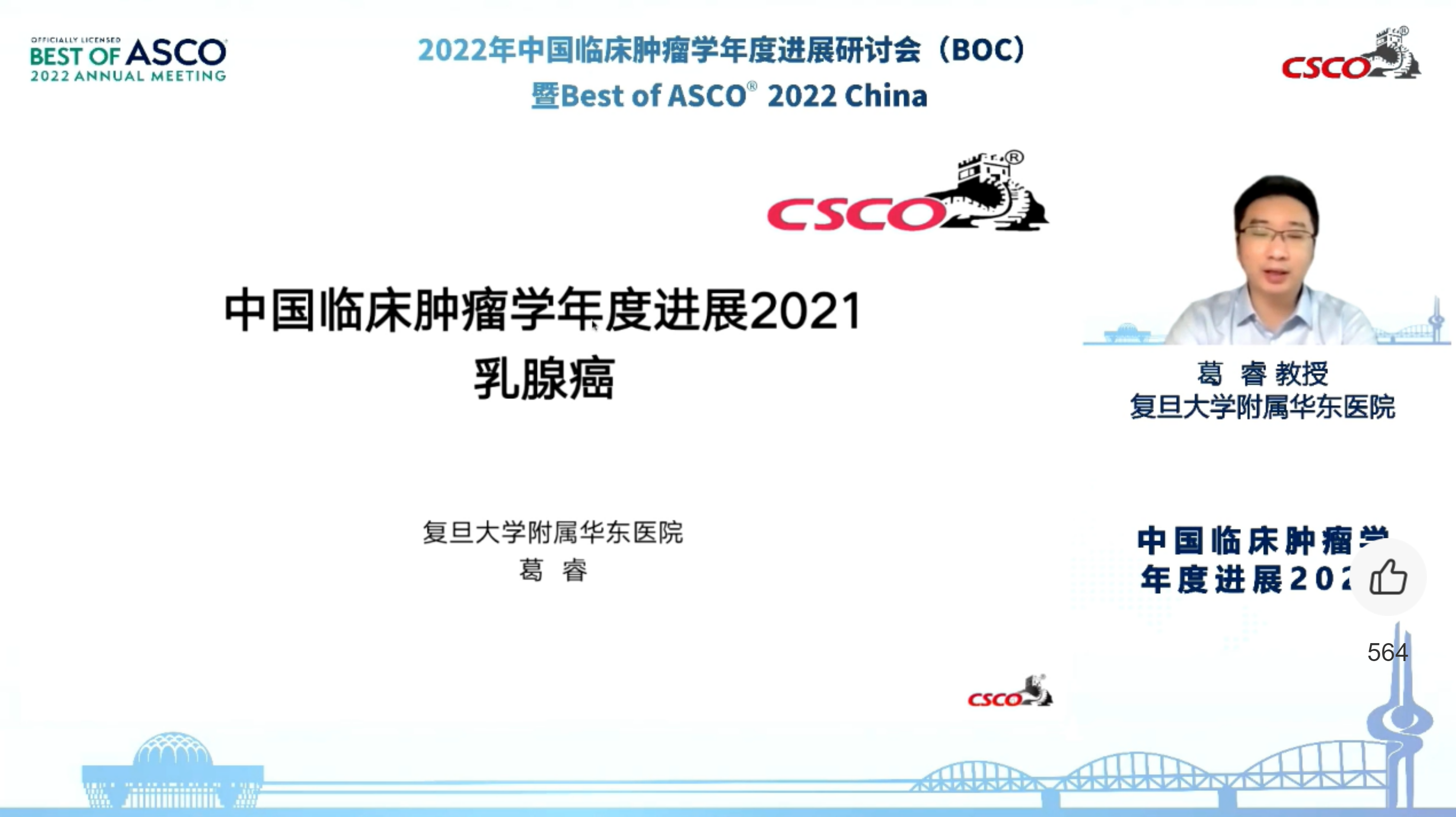 会议最后,李进教授在闭幕致辞中表示,本次大会分享的ASCO研究进展将对未来的临床实践带来新的变革,我们欣喜地看到其中不乏来自中国的原创研究成果。尽管我国的癌症负担日益加重,但相信我们会化压力为动力,在一代又一代的中国临床肿瘤学专家的赓续传承、不懈努力之下,用中国力量、中国证据寻找具有中国特色的癌症诊治方案。让我们砥砺奋进、携手前行,相约在2022年CSCO年会!