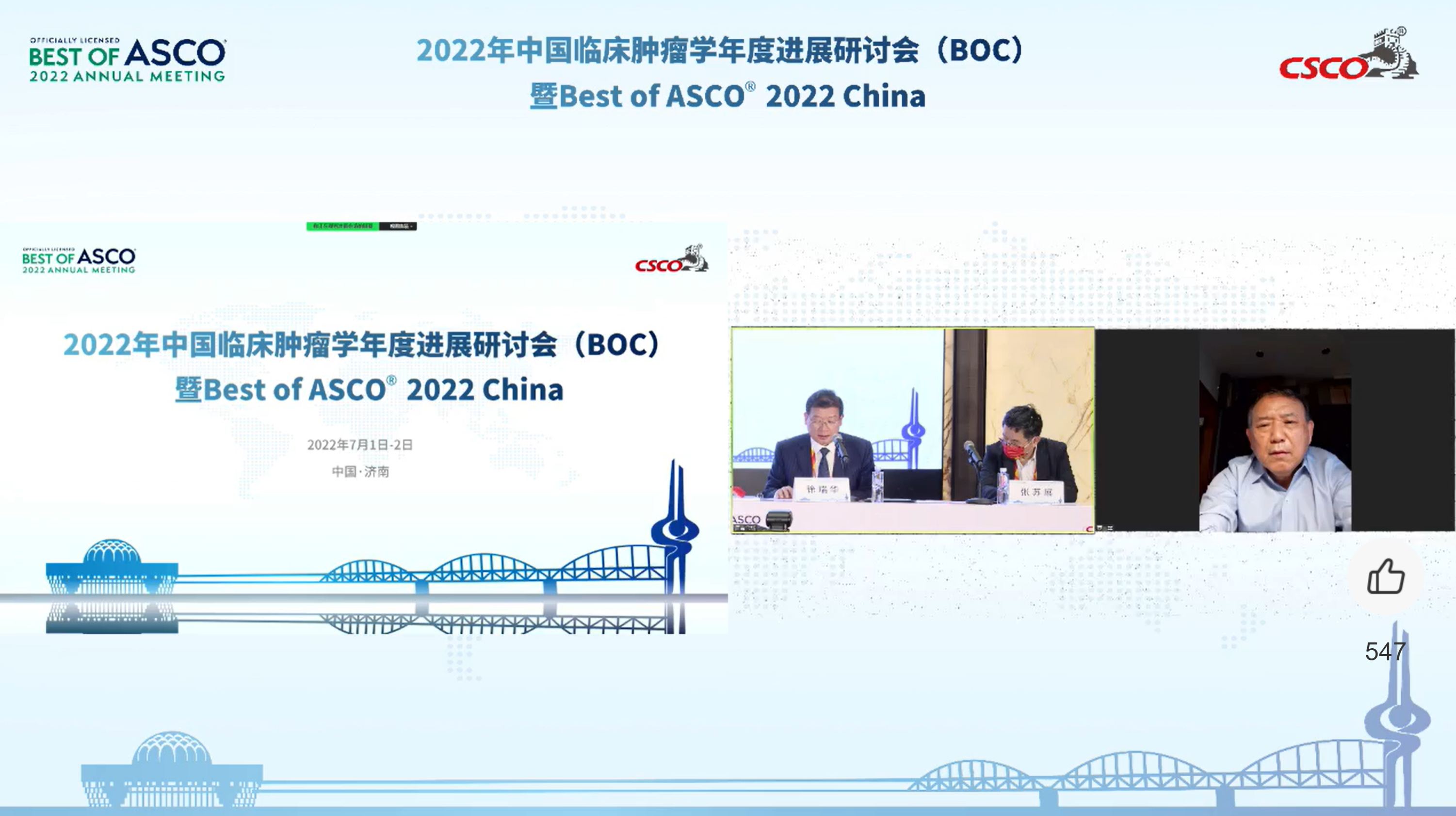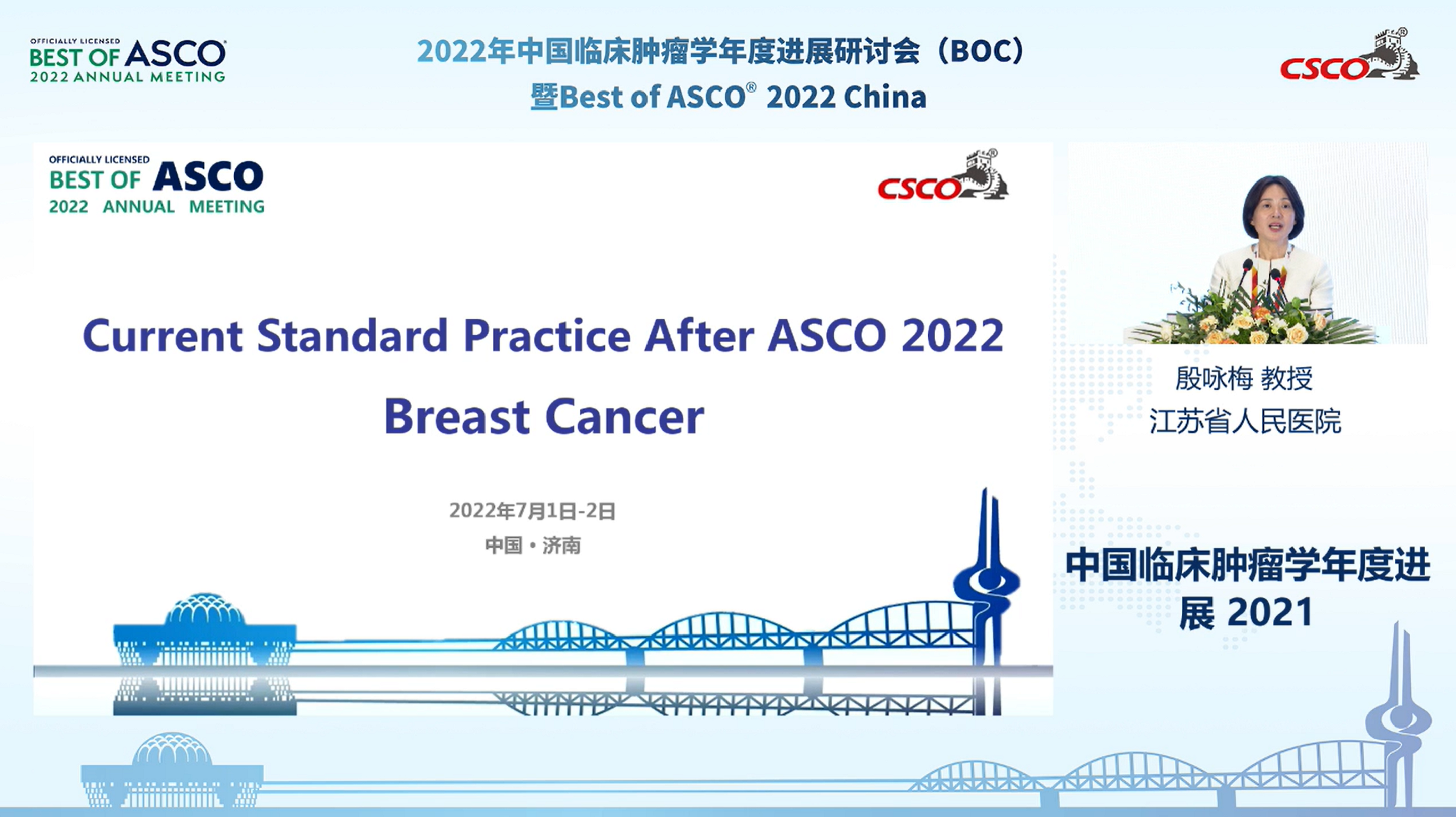 四面荷花三面柳,一城山色半城湖。由中国临床肿瘤学会(CSCO)联合北京市希思科临床肿瘤学研究基金会主办的“2022年中国临床肿瘤学年度进展研讨会(BOC)暨Best of ASCO® 2022 China”于7月2日在泉城济南圆满落下帷幕。本文总结了会议第二天的精彩瞬间,与线上、线下的中国肿瘤学同道一起分享最新的ASCO重磅研究和中国临床肿瘤学年度进展。