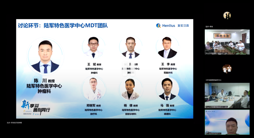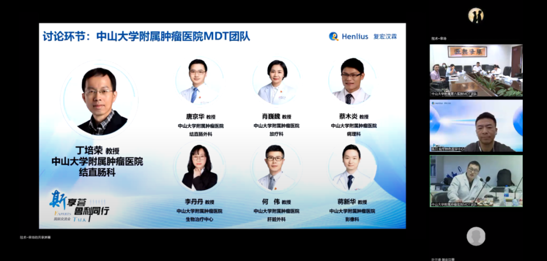2022年8月19日,斯享荟·鲁利同行院际交流会云端召开。本次会议由中山大学附属肿瘤医院丁培荣教授、中山大学附属第六医院黄美近教授、陆军特色医学中心陈川教授担任大会主席,在丁培荣教授讲解了《MSI-H结直肠癌免疫治疗的临床实践及思考》后,中山大学附属肿瘤医院唐京华教授、中山大学附属第六医院张剑威教授、陆军特色医学中心王斌教授依次分享了典型病例,并由三家医院MDT团队分别对病例展开详细分析,为共同探寻结直肠癌免疫治疗新动向提供重要意义。